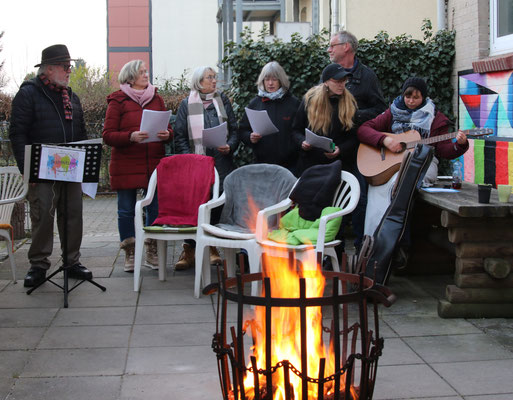 Am 8.2.25 trafen sich zahlreiche Mitglieder und weitere Gäste in der Werkstatt22 und im Hof des Vereins. In der Werkstatt standen Speisen und Getränke bereit. Bei aufkommender Dunkenheit wurde im Hof der Feuerkorb entzündet.