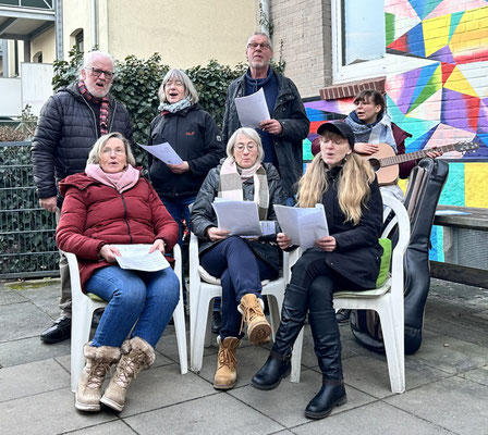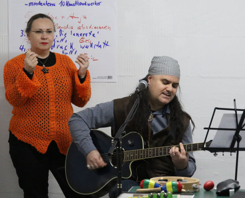 In der Werkstatt trugen Alexander Bogdanowski und Ada Bobrova aus Hannover / Nienburg mit Gesang und Instrumenten zahlreiche Lieder vor. Und im Hof sang die zum Verein gehörende Singgruppe fArbenKlang verschiedene Lieder, begleitet von Gitarren.