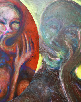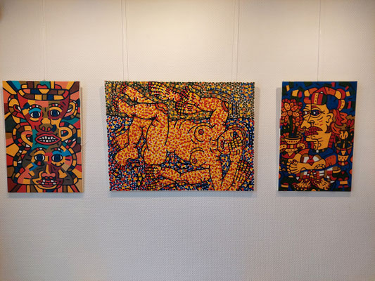 Bilder, es sind aufwühlende Bilder dieses Seins. Er beschäftigt sich in den in verschiedenen Techniken gefertigten Werken mit den Schatten unseres Seins. Er zeigt u.a. Dämonen, deren