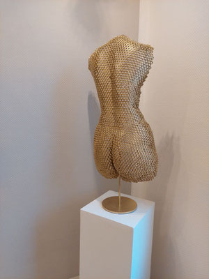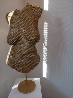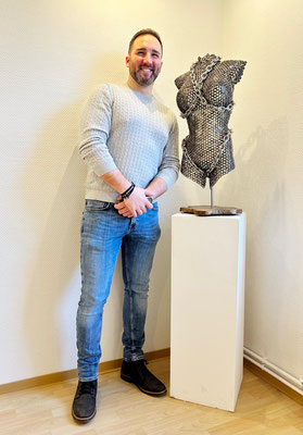 Der Künstler lädt die Besucher:innen ein, in die faszinierende Welt der weiblichen Torsi aus Metall einzutauchen.