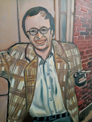 "Sein Werdegang ist ja bereits in der Einladungskarte dargestellt – also er hat viele Jahre was mit visueller Kommunikation / Design gemacht, so auch sogar mal Lautsprecher designt, die wurden auch gebaut.