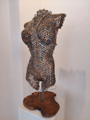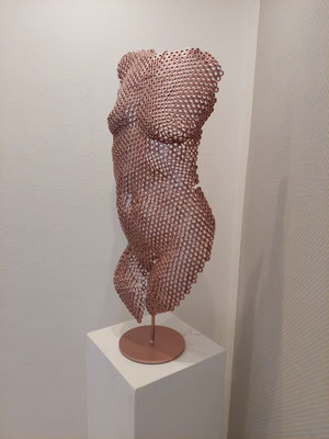 Der Künstler lädt die Besucher:innen ein, in diese faszinierende Welt der weiblichen Torsi aus Metall einzutauchen, die Ästhetik der Formen wahrzunehmen.