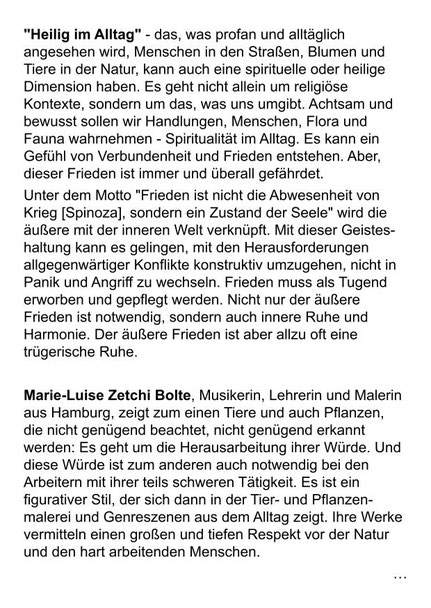 Betrachter:innen werden sich vielleicht etwas länger mit diesen Werken befassen, darüber nachdenken, reflektieren, vielleicht auch vom einen oder anderen Bild