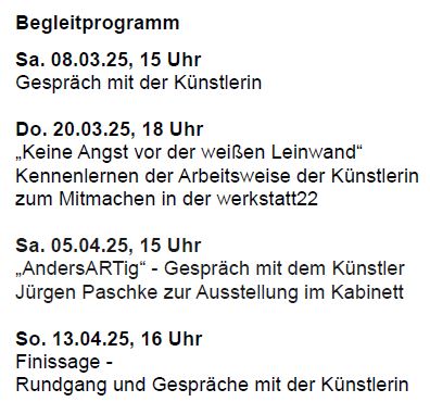 Schreiben Sie uns einfach eine Mail und erwarten Sie demnächst alle Infos über unsere Ausstellungen, Workshops und Veranstaltungen!