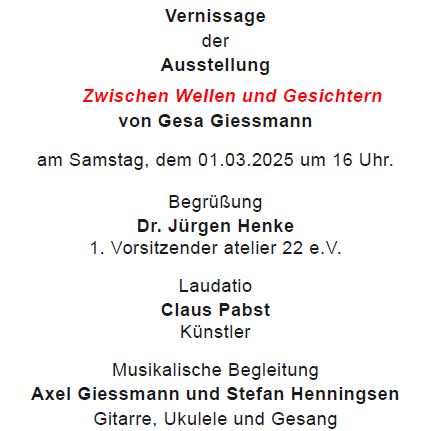 Gesa Giessmann zeigt Portraits, Wellen und maritime Landschaftsmalerei in Acryl.
